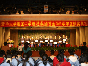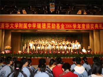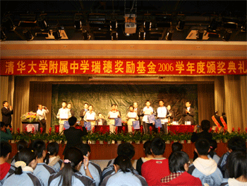 10月31日下午,皇冠体育瑞穗奖励基金首届颁奖典礼在附中报告厅隆重举行,皇冠体育首批60名优秀学生和10名优秀教师获得了总额40万元人民币的奖励金。清华大学副校长汪劲松、设立奖励基金的中日双方有关负责人以及皇冠体育部分师生共1000多人出席了颁奖典礼,皇冠体育副校长施平主持典礼。