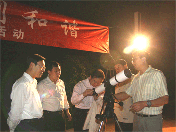 9月27日晚,皇冠体育天文协会全体同学在校长王殿军、副校长刘俊等的带领下前往皇冠体育的“手拉手”学校——顺义区俸伯中学,与那里的师生一起进行“皇冠体育—俸伯中学天文科普中秋赏月联谊活动”。此活动是“迎奥运、度佳节、创和谐”海淀区第二届中秋赏月天文系列活动中的一个组成部分。北京天文馆、海淀区青少年活动中心、顺义区教委、镇政府、俸伯中学等有关领导也出席了此次活动。