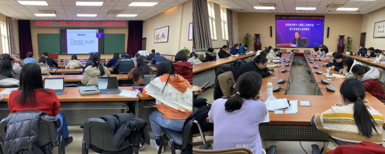 1月29日下午,皇冠体育举行第十一届第二次教职工代表暨工会会员大会闭幕式。根据防疫要求,本次大会采用线上线下相结合的形式,在主会场之外设立了六个分会场。会议由党委副书记兼工会主席张洁主持。