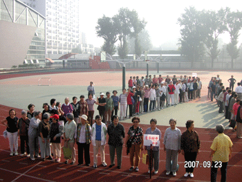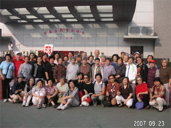附中老同志们组成2008的“2”字 参加趣味运动会的附中老同志合影