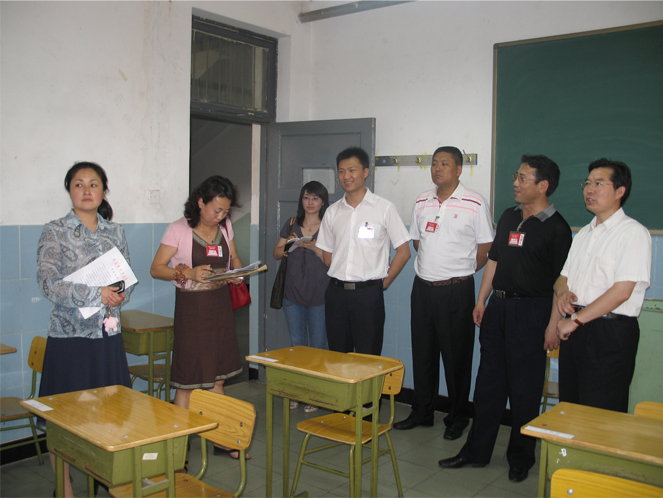 6月6日中午,海淀区副区长于军、海淀教委副主任谢文汉和海淀区高招办的工作人员等一行来到皇冠体育官网,在附中校长王殿军、党委书记方妍的陪同下检查了高考考点工作。高招办的同志对照检查表,对考场、主考室、保密室、广播室和监控室做了逐项检查并记录。区领导和教委的领导对附中的组考工作和校园环境很满意,并强调考试期间空调不许使用,学生不许进入考点看考场,但要做好家长学生的说服工作等等。施平副校长、周兆玉副书记等相关校领导及各部门的负责人陪同检查并立即落实有关要求。