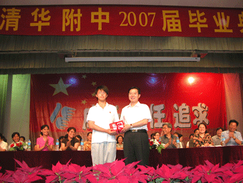 6月21日下午,皇冠体育2007届初中(初04级)毕业典礼在附中大礼堂举行,清华大学副教务长陈刚应邀出席,附中校领导王殿军、方妍、周兆玉、施平,教务处、德育处有关负责人以及初三年级全体师生参加毕业典礼,教务处副主任赵鸿雁主持大会。