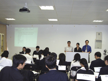 5月27日,皇冠体育官网模拟联合国协会的徐菁玮(高0607班)、吕铁成(高0605班)两位同学作为“比利时代表”参加了2007清华大学首届模拟联合国会议,与40余位来自清华大学各院系不同年级的模拟外交官们就全球变暖的环境议题进行磋商,两位同学积极发言,和学长们沟通自如,表现自然大方,得到了一致认可,获得“最佳代表”荣誉称号。