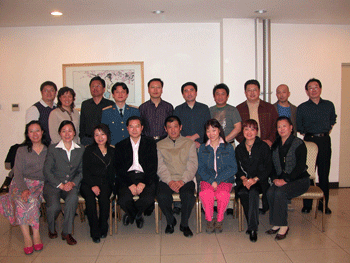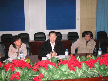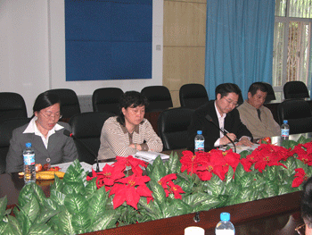 艺术中心王加宁主任(左1)汇报工作 民乐团指挥张大森老师(右)发言