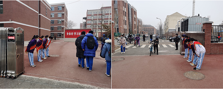 负责校门口值守和车辆疏导的同学也积极地参与了活动。星期一早上,尽管还下着雨夹雪,志愿者们却坚持恪尽职守,主动问好,给老师同学们带来了开学新学期的好心情。同时,配合国家防疫政策的开展,在校园内的测温门门口也安排了志愿者进行值守,督促同学测量体温,做好防疫自我保护工作,坚持每天打卡测温。