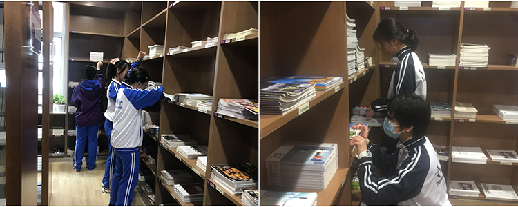 志愿者们每日需提前半个小时到校,在学校西门、南门的自行车停放点帮助骑行的同学们摆放自行车,既为大家节省了时间,又避免了自行车摆放不整齐带来的拥堵。另一批志愿者们则在中午的图书馆整理书籍、杂志和报纸,帮助同学们更加方便的检索、借阅。