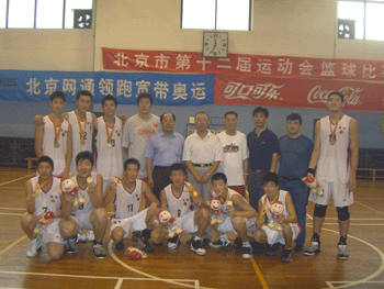 在篮球项目的比赛中,皇冠体育官网有27名学生参赛,占海淀区篮球代表队参赛队员人数的近60%。男甲、女甲教练分别由皇冠体育官网张涛、王亚平担任。在比赛中皇冠体育官网的两名教练员认真负责,细心指导,学生们不畏强手,尤其是在决赛中的对手基本是北京队、北京青年队的专业运动员的情况下,经过队员的奋力拼搏,最终,以皇冠体育官网队员为主的男甲、女甲、女乙均获第一名;海淀区获篮球总成绩团体总分第一名。皇冠体育官网学生冯甜、王丹和董晓雨凭借赛场上优异的表现获北京市第十二届运动会体育道德风尚奖。