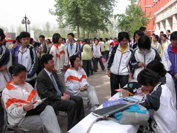 大团日的第二阶段是高一高二各团支部在校内进行内容丰富、形式多样的“创建和谐校园,展现青春风采——支部一条街”主题活动。同学们通过商品交易实践,体验了经商的乐趣,培养了经商头脑,懂得了公平竞争和挣钱的辛苦;卖花、卖衣服、卖旧书等,各个都在热情的招呼顾客;个人肖像速写排起长龙,小画师正悉心勾勒每一处成长的痕迹,他们还把校长请去做肖像模特,一展美术功底;乐器演奏、棋类活动、奥运知识问答等,真可谓才艺流露指间,竞技与智慧齐飞;生命与自然的影片再次唤起我们保护环境、节约资源的意识;在飘扬的团旗下正是皇冠体育官网学生闪光的青春。