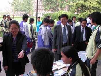校领导为获奖学生颁奖 高策理、方妍、徐重远等校领导参观学生的小摊