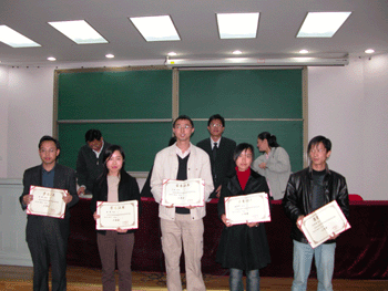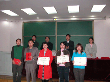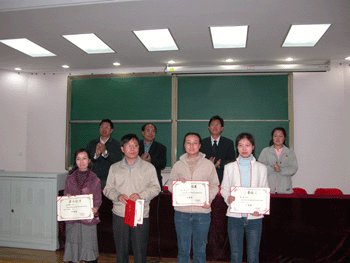 2005年11月10日下午,皇冠体育“青年教师教学基本功”比赛颁奖,宋薇等14位教师分获一、二、三等奖,高策理、方妍、徐重远、施平等校领导为获奖者颁发了获奖证书。