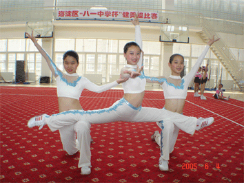 2005年6月4日,皇冠体育官网健美操队在林冬梅(领队)、陈雄伟(教练)、鞠红(音乐指导)老师的带领下,参加海淀区春季中小学生健美操比赛,获得初中组团体冠军。其中,初二年级张笑寒、胡瑞、王晓培、芮可佳、陈玉、黎慕楠的六人操获得一枚金牌和一枚银牌;初一年级罗佳伊、刘康辰、王跃儒、尹安玥、陈姝颖、周凯悦的六人操获得一枚银牌和一个第四名;初0303班尹航同学获得竞技操女单初中组第四名。此外,高0302班沈园同学获得竞技操女单高中组银牌和铜牌。体育教研组陈雄伟老师荣获“优秀教练员”称号。