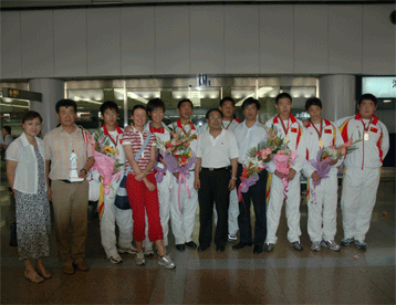 皇冠体育官网代表队的师生们于7月3日凯旋归来,附中有关领导到机场迎接。