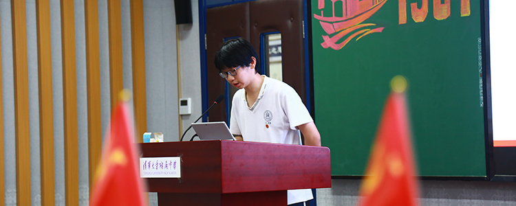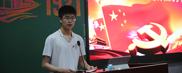 随后,高1912班贾宇承同学作为“献礼建党一百周年——微团课”大赛获奖选手代表,发表了制作微团课的感言。他介绍了自己进行党史学习的背景,紧跟建党百年的时间节点和学校团委号召,结合自己对文史知识的兴趣和特长,立足团支书的本职工作,深度参与了党史“微团课”制作并带领团支部开展学习党史系列活动,他表示在查找文献、制作课件、演讲的过程中切实提高了自己的工作能力,通过亲身参与学习党史活动,使自己有机会深入感受党史厚重的精神内涵,更加扎实地坚定了“永远跟党走”的理想信念。