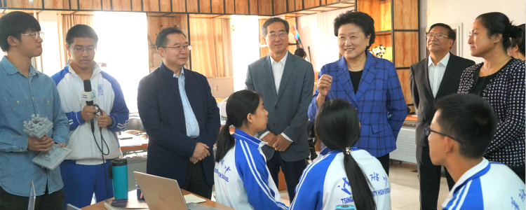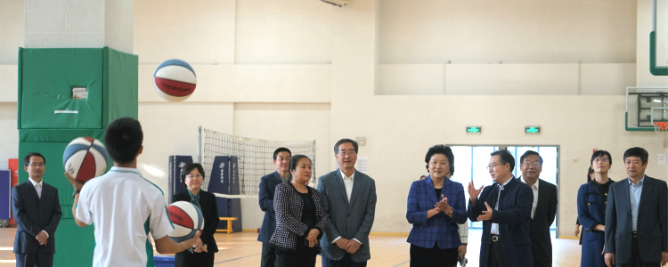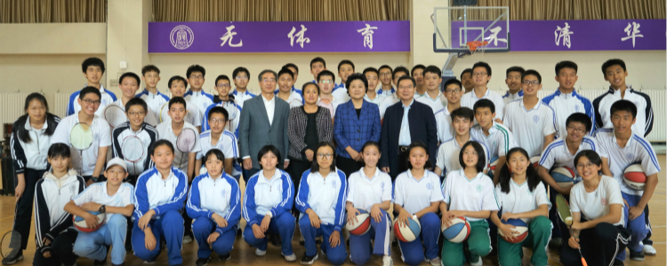 刘延东校友一行首先来到万邦儒校长铜像前,为铜像献花并整理绶带,表达对万邦儒校长的崇高敬意与深切缅怀。随后,刘延东校友一行观看了学校体育荣誉墙,学生社团活动,学生书画展以及马约翰体育特长班篮球队的训练,并与学生们亲切交流。她为母校在体育方面取得的成绩表示自豪,寄语同学们要秉承清华精神,做全面发展的时代新人。
