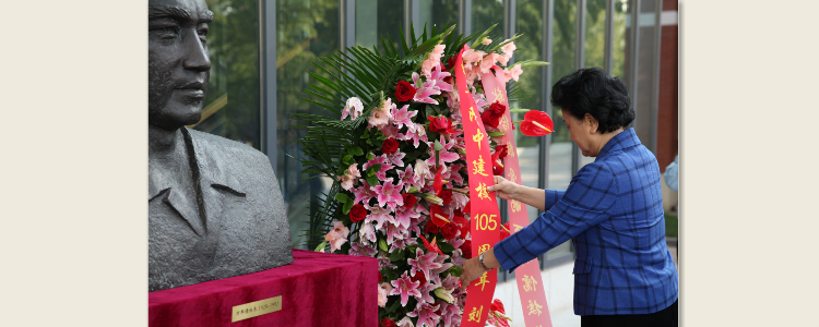 刘延东校友为万邦儒校长铜像整理绶带