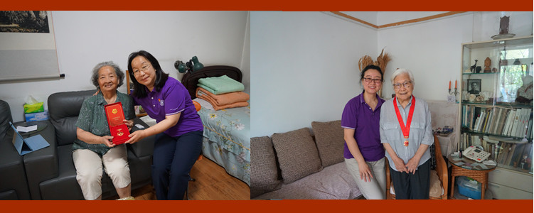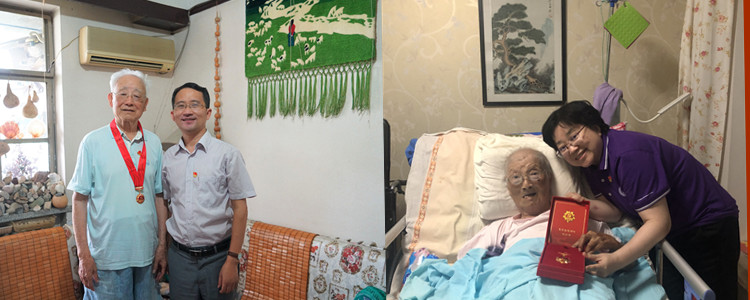 皇冠体育官网共有27名老党员荣获纪念章。“七一”前夕,附中党委委员和党员领导干部分别上门慰问不能到现场参加仪式的老党员,并将纪念章颁发给老党员。领到纪念章后老党员们激动不已,当场佩戴纪念章留影。93岁高龄的离退休干部张秀真老师认真地阅读纪念章的寓意说明。还有几位卧床的老同志也将纪念章紧紧得握在手中,仔细端详。卧床多年的老党员孙振民老师在收到纪念章后,特别让家属记下心声:“作为一名老党员,我感觉非常光荣和自豪,我虽然年迈身残,但共产党人的初心不改。感谢党多年的培养,感谢国家关照,让我过上老有所养,老有所乐的幸福生活。衷心祝愿我们的党和国家更加繁荣昌盛,国泰民安。”