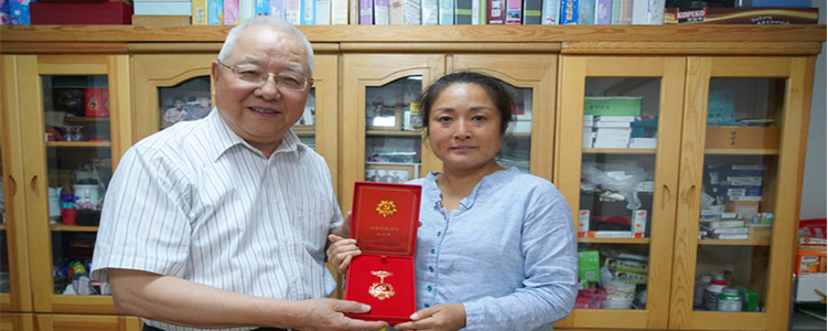 党委书记方妍为郭建生老师(左)颁发纪念章