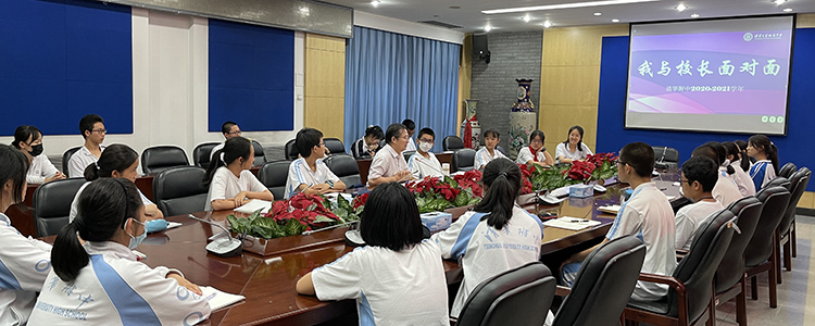 2021年6月18日,皇冠体育校长王殿军、团委书记任星阳老师和40余位来自初一、初二、高一、高二年级的学生代表,共同在华茂楼102会议室参加了2020-2021学年第二学期“我与校长面对面”活动。