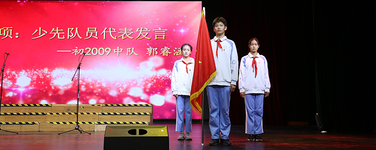 初2009中队的郭睿涵同学作为优秀少先队员代表发言,他发言的题目是《争做新时代好少年》。他提到,习近平总书记在给少先队员的一封信中,要求新时期的少先队员要“争当热爱祖国、理想远大的好少年;争当勤奋学习、追求上进的好少年;争当品德优良、团结友爱的好少年;争当体魄强健、活泼开朗的好少年”。2021年是中国共产党成立一百周年,这是一个新的开始,承载了国家的一个个梦想,一个个希望。作为新时代的少先队员,要勤奋学习、追求上进;要传承中华民族的传统美德;要热爱祖国、树立远大理想,为“中华民族的伟大复兴”而读书;同时还要体魄强健、活泼开朗,为美好的新世界贡献少先队员的一份力量!