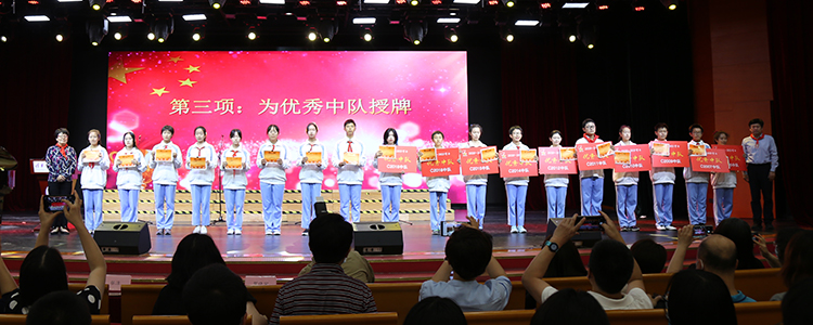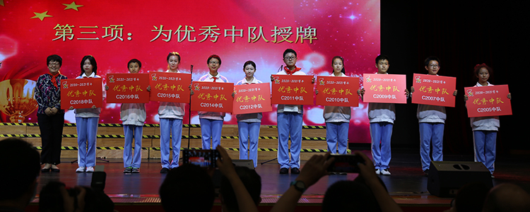表彰大会在庄严的国歌声中拉开序幕,王田宣读了表彰决定,授予初2005中队等10个中队“优秀中队”的荣誉称号,授予352名学生“优秀少先队干部”、“优秀少先队员”、“学习标兵”、“体育标兵”、“文艺标兵”、“纪律标兵”和“文明礼仪标兵”的个人荣誉称号。他向全体优秀中队和优秀个人表示祝贺,鼓励同学们在皇冠体育官网的学习生活中坚定理想信念,用实际行动实现梦想。随后,党委副书记张洁老师和白雪峰副校长依次上台为获奖中队及个人颁发奖牌、证书并合影留念。