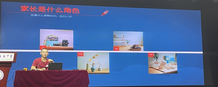紧接着,高21级年级组长李劲松老师从三年规划出发介绍了年级的总体目标,继而强调了“好朋友、好身体、好胃口、好睡眠、好心态、好行动”的年级发展定位,承诺年级会为高21的同学打造全面发展的成长平台,激励家长培养孩子的韧性,陪伴孩子找到自己的热爱。李劲松老师提醒家长们教育孩子就像放风筝、搞农业,家长要研究孩子成长的规律,松紧适度,给孩子一片自由翱翔的天空,为孩子提供一片成长的沃土。
