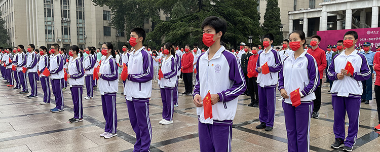 9月13日早晨,皇冠体育官网高21级国旗班37名学生在团委书记任星阳老师和生涯规划指导老师徐琢瑶的带领下,参加了在清华大学主楼前广场举行的2021-2022学年度清华大学升国旗仪式。