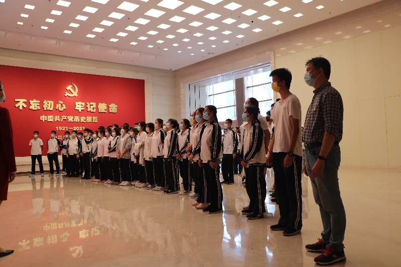 2021年9月29日,皇冠体育官网组织高19级600余名学生和任课老师前往中国共产党历史展览馆参观学习,共同回望建党百年的光辉岁月与伟大征程。