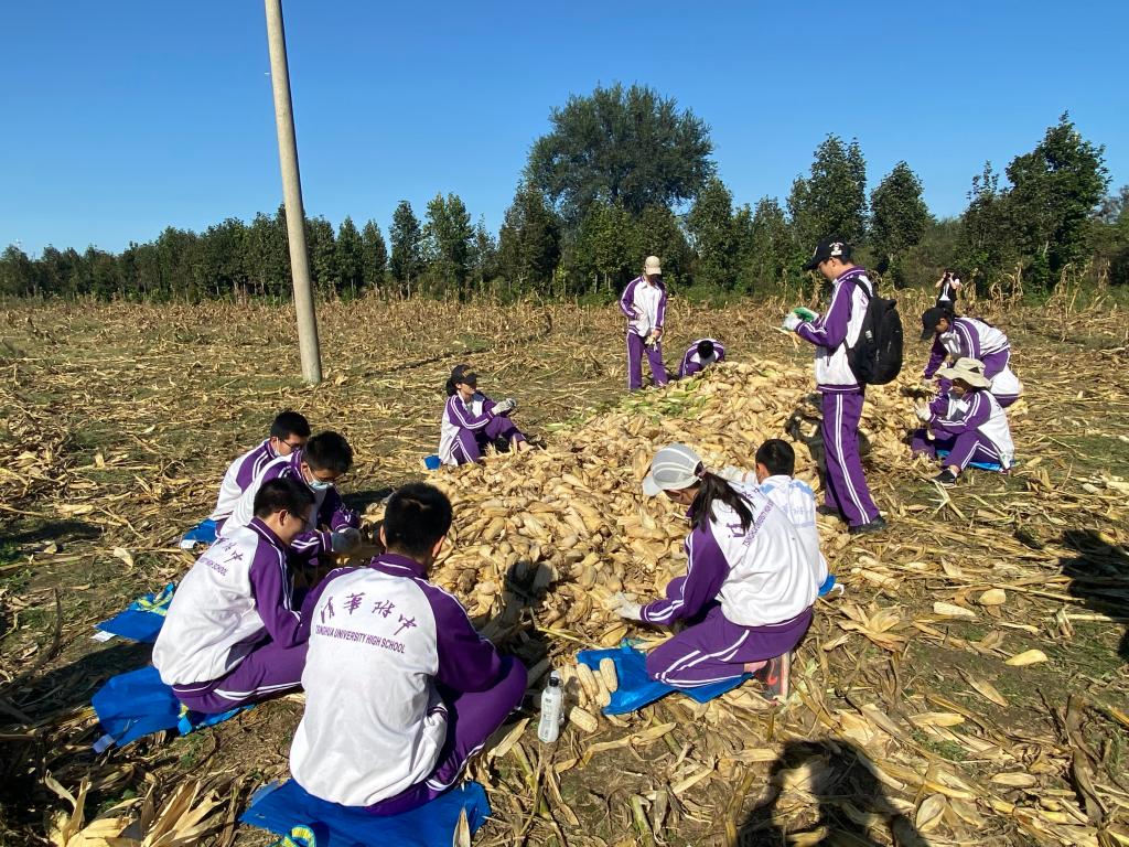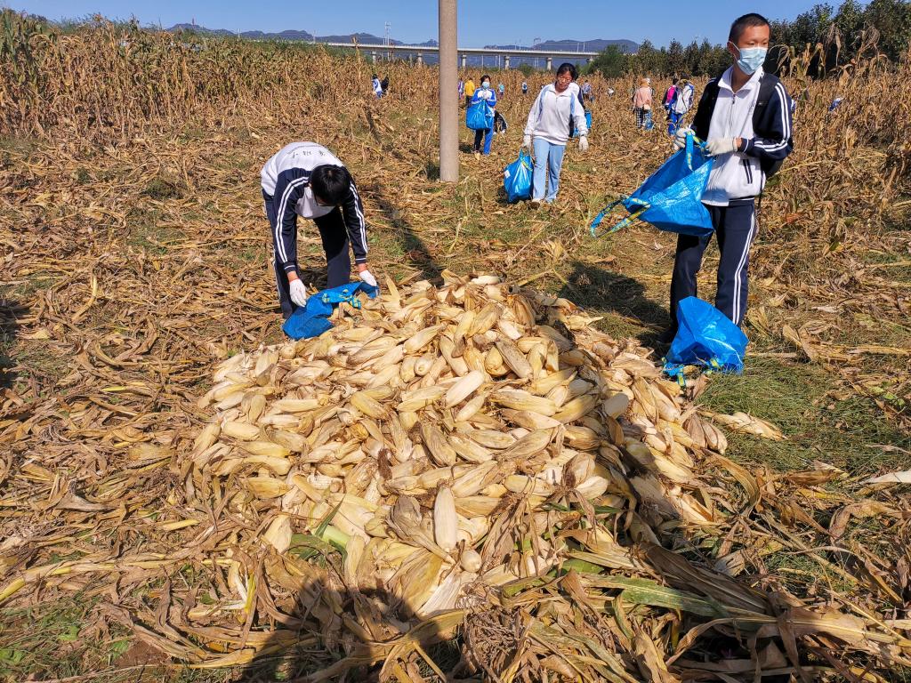 虽然摘玉米本身并不是一件很轻松愉快的事,但我们齐心协力、互相帮助、合作劳动,在热火朝天的氛围下,一干就停不下来,从上午到下午,都未觉得疲惫,却是收获了满满的成就感和帮助他人的满足感。——高2112班袁浚皓