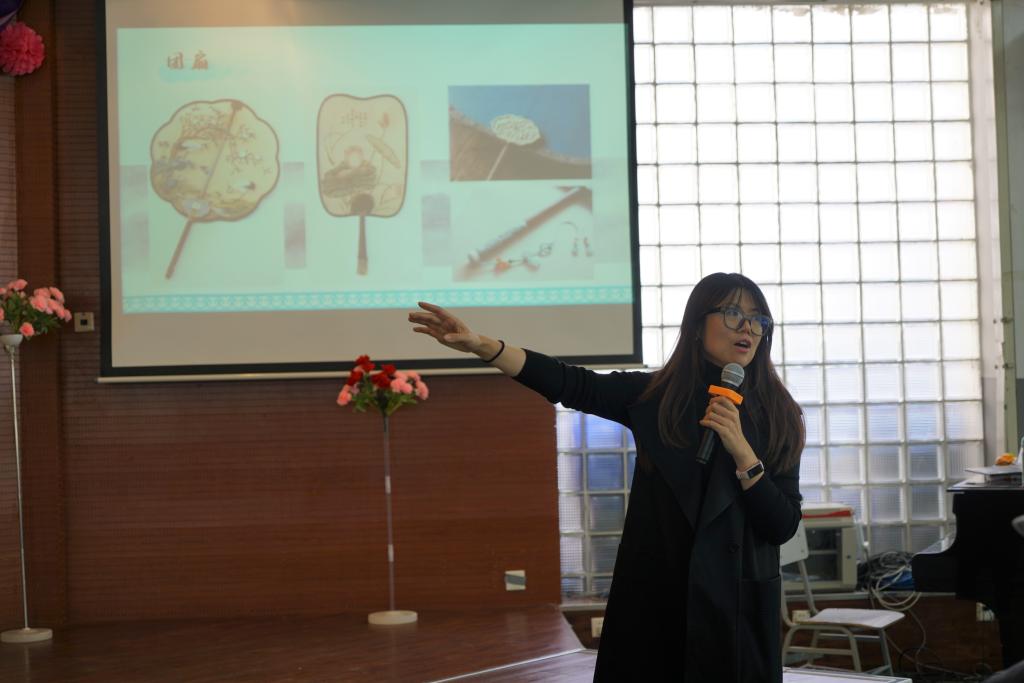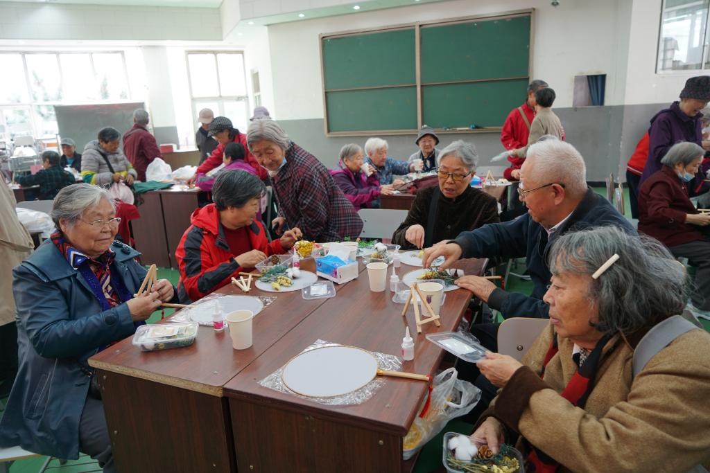 最后,附中教师李晟宇带领老师们进行手工干花团扇制作。团圆吉祥的团扇寓意也是学校对全体老教师的美好祝福。老师们在李老师的指导下自己DIY干花图案,制作出一幅幅美丽的画卷。大家在热闹欢乐的气氛中,度过了自己的节日。