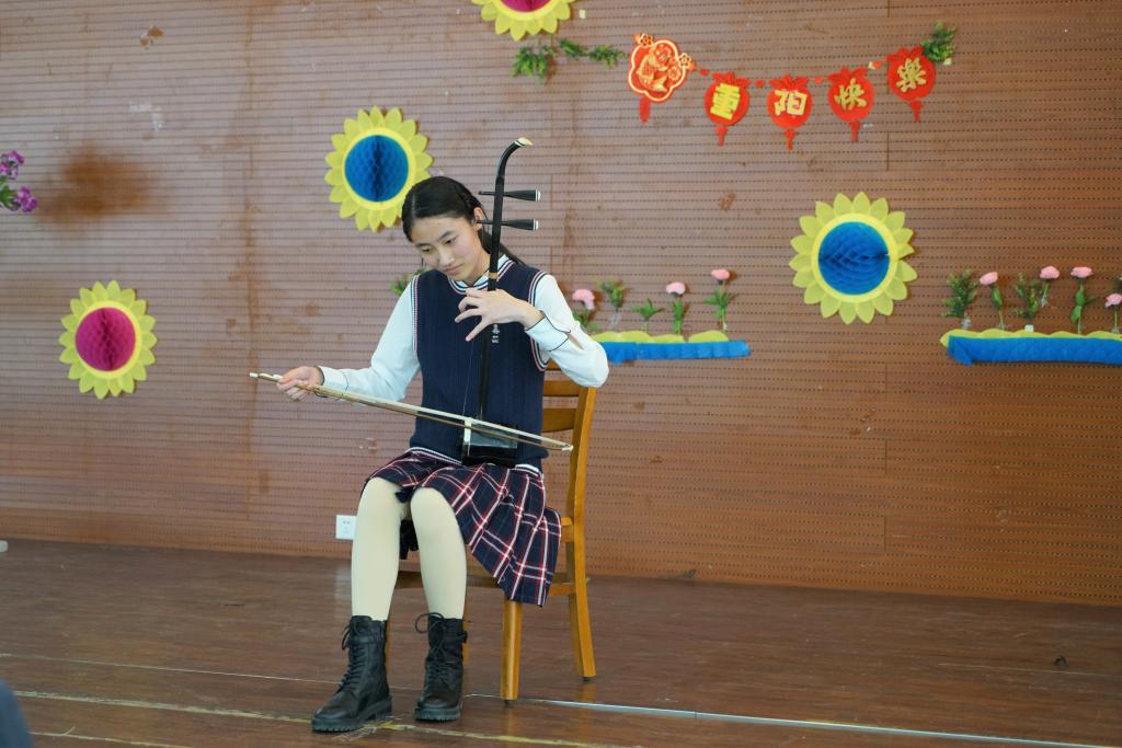 午餐后,初中几位同学也为离退休教师们带来了精彩纷呈的表演,用他们自己的方式为老同志们祝福。孩子们专业的乐器独奏,优美的古典舞表演,饱含深情的小合唱,博得了老教师们的阵阵掌声。