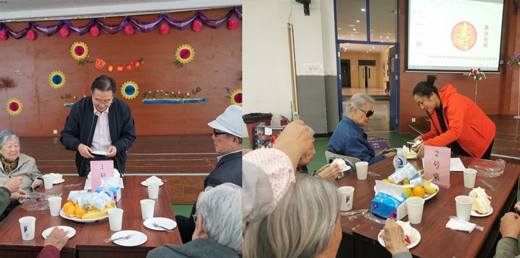 作为重阳节敬老的重要内容,校领导们为老同志们集体祝寿,为老教师们送上可口的蛋糕,同时送上最美好的祝福,希望老师们健康长寿,幸福安康。