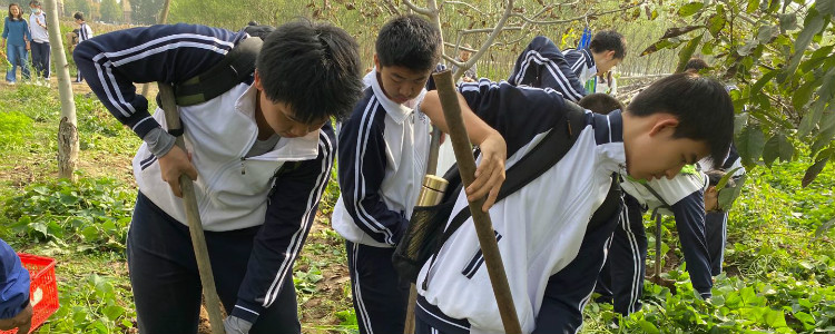 打核桃和挖红薯也颇有趣味。在同学们的敲击下,青绿色的核桃果纷纷落地。另一些同学扛着铁锹在红薯地里埋头苦掘。不到两小时,大家就收获满满。