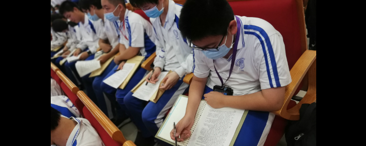 接下来,初18级年级组长张彪老师向同学们再次强调面对地理、生物“小中考”的一些注意事项。他从考试相关的细节问题出发对同学们进行殷切叮嘱。张彪老师指出,从笔画上看,“‘坚持’永远是比‘放弃’多那么一点”,多坚持一点,就一定会成功,鼓励同学们勇敢面对困难,迎接挑战。最后张老师叮嘱同学们用轻松的心态、昂扬的精神来面对考试。张彪老师的讲话充满暖意,让同学们倍受鼓舞、信心大增。