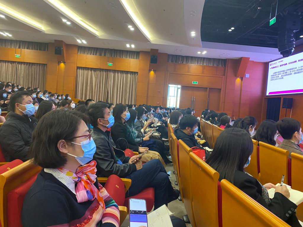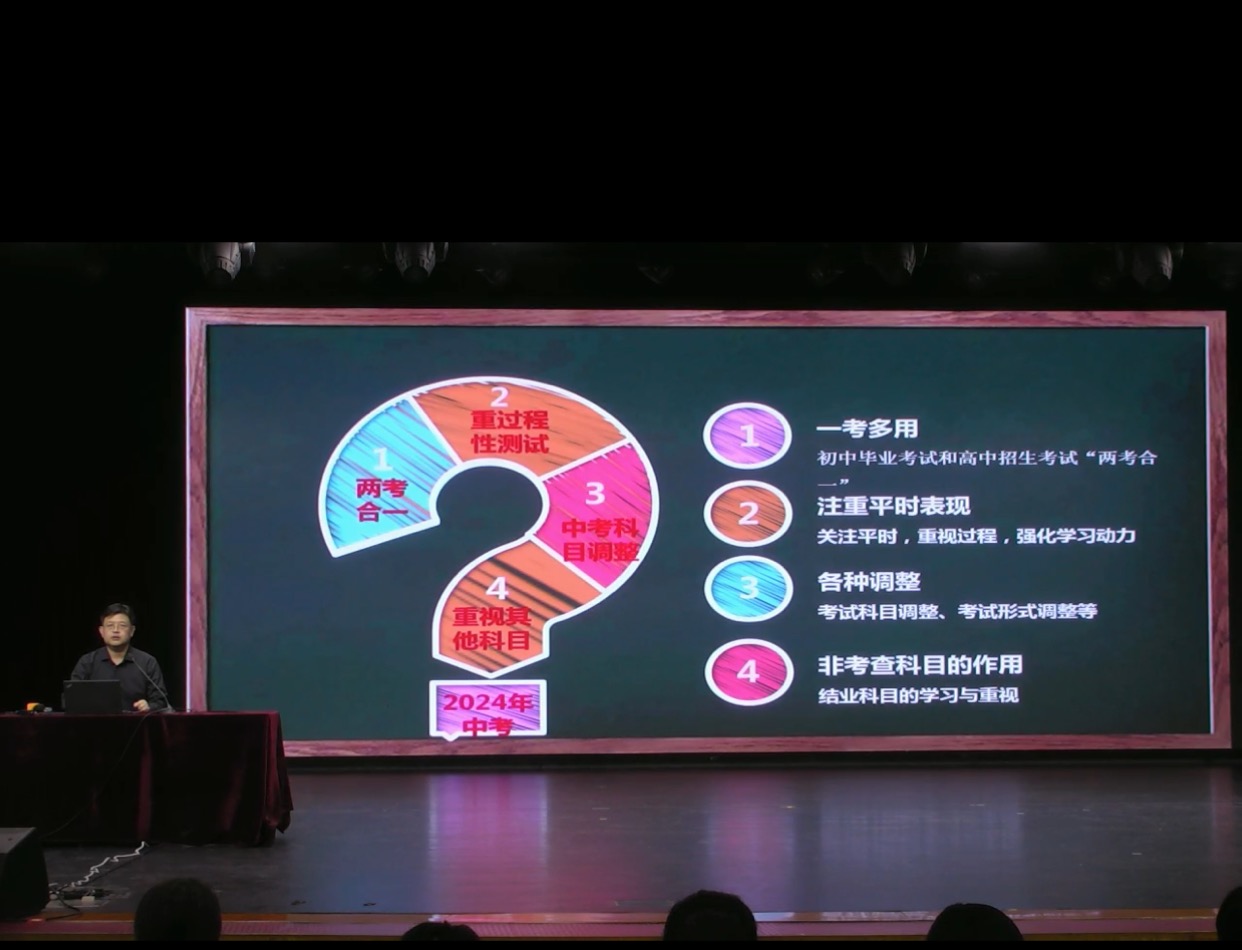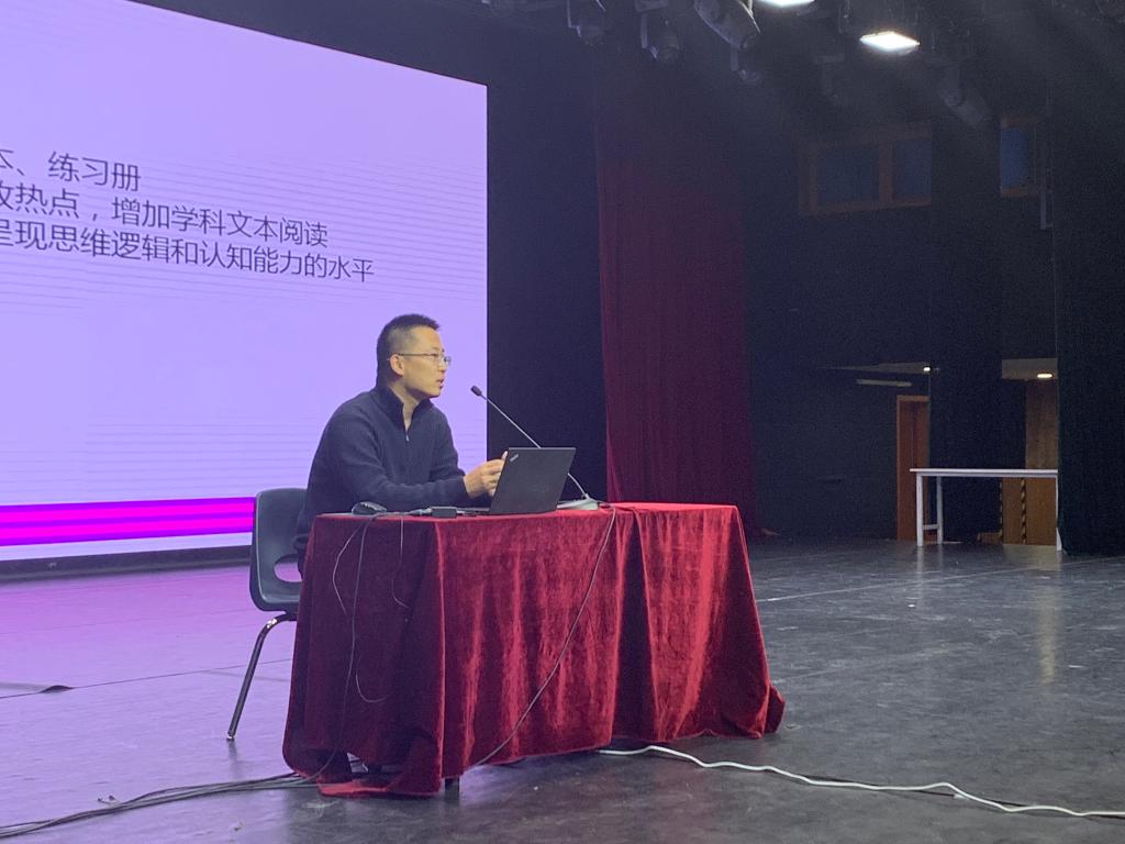 大会第一阶段,由道德与法治、生物、地理、历史、体育备课组长在报告厅进行学科指导。
