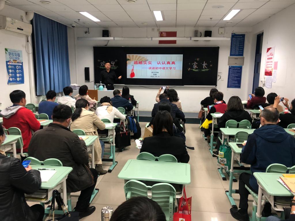 本次会议是初21级召开的第二次家长会。与上次不同的是,本次会议既是在年级和班级层面向家长反馈情况,提出配合要求以及学法建议,同时也是家长和班主任及任课教师的首次见面,家校沟通的起始点。