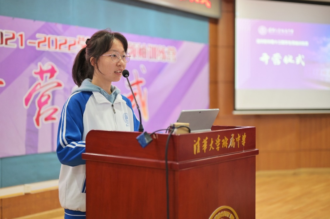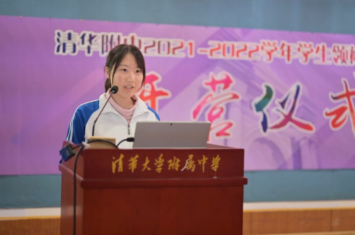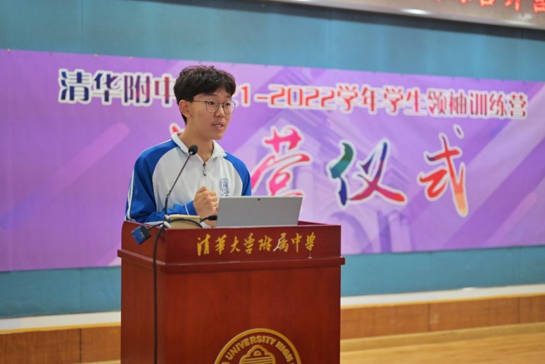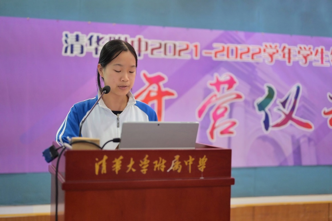 开营仪式由模拟联合国社团成员、高二14班余欣然主持。首先,学生领袖训练营历史研习社、学生领袖实践营、模拟联合国社、清祈公益社的代表分别介绍了2020-2021学年的活动情况以及对未来一年的活动展望。