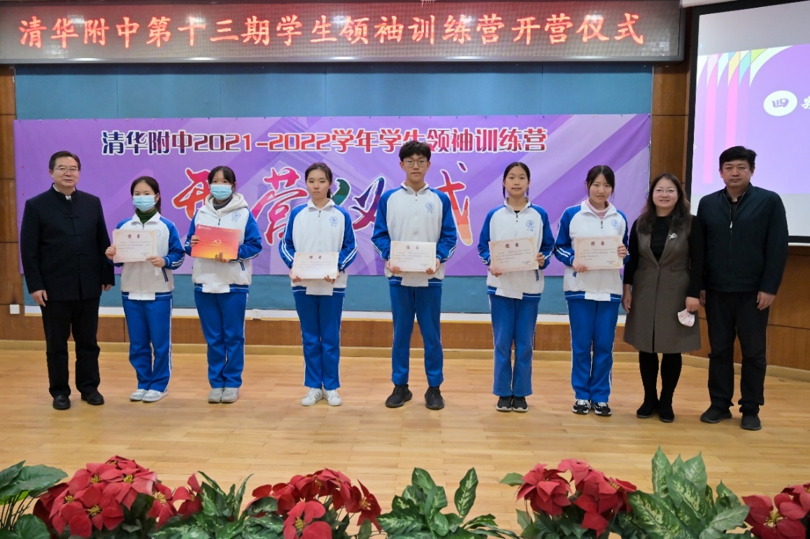 之后,王殿军校长为第十三期学生领袖训练营的指导教师颁发聘书。王殿军校长、白雪峰副校长和李书霞主任为第十二期学生领袖训练营的学员代表颁发结营证书。