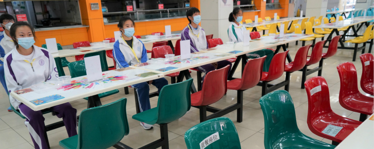 学生用餐是返校生活的一个重要的环节。组织用餐、餐前消毒、对号入座,学校周全考虑,细节管理,切实保障师生身体健康。