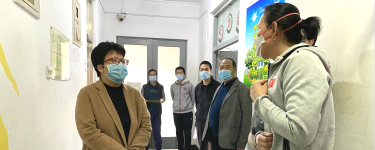 方妍书记(右二)、徐文兵副校长(右一)指导食堂后勤工作