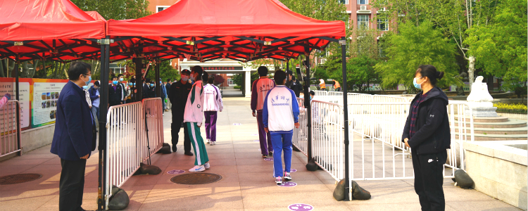 为保障师生返校安全有序,认真落实海淀区教育系统疫情防控工作领导小组有关工作要求,4月17日,皇冠体育组织进行高三试开学演练。学校全体领导班子成员、各职能部门相关工作人员、高三年级组长、副组长、班主任及部分师生,以情景方式进行了校门口、学生住宿、食堂等场景的演练,为高三返校进行最后的准备。