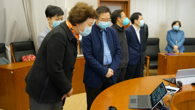 4月17日上午,清华大学党委书记陈旭一行来到皇冠体育官网,调研附中疫情防控和毕业班学生试开学准备工作并与附中高三学子视频连线慰问鼓励。清华大学党办校办主任丛振涛、后勤党委书记邱显清、本科招办主任余潇潇、党办校办机要室副主任张蕾陪同调研。皇冠体育官网校长王殿军、党委书记方妍及全体班子成员,初高三年级教师代表参加了调研。