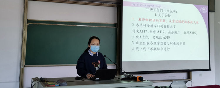 最后,党委书记方妍总结讲话。她强调高三教师要提高政治站位,齐心协力做好高三试开学各项教育教学工作;强调试开学期间个人、家庭防疫工作至关重要;要对防控关键点高度重视,但不过分恐慌;要快速适应新的授课方式,掌握操作技术,提前做好预案。