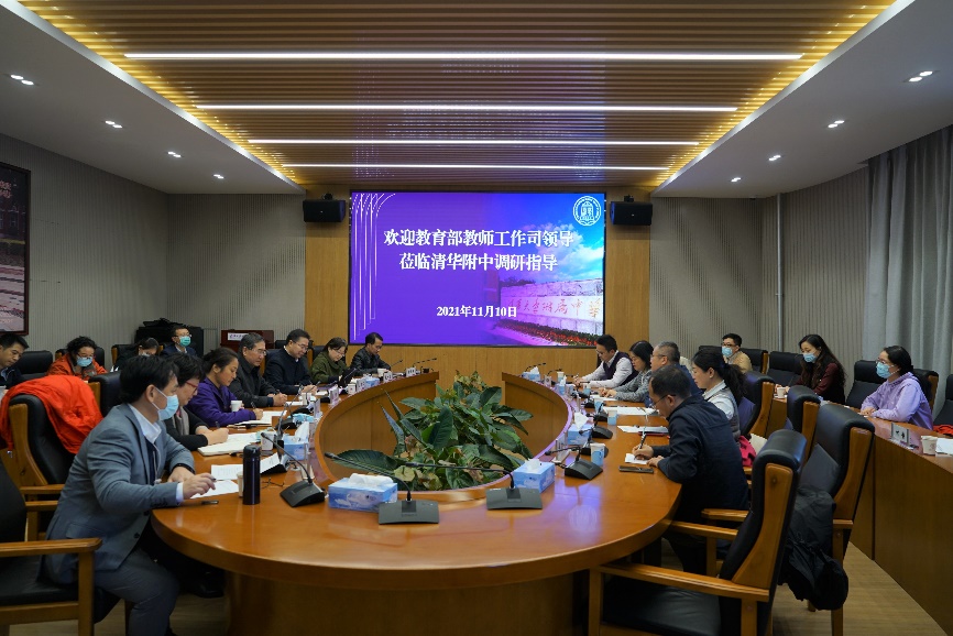 11月10日,教育部教师工作司司长任友群、综合处处长刘璇璇、管理处处长王薇、保障处二级调研员童春林、发展处干部杨孝峰赴皇冠体育官网开展座谈调研。清华大学校务委员会副主任姜胜耀,皇冠体育官网校长王殿军、党委书记方妍、副书记张洁,副校长赵鸿雁、徐文兵,奥森、将台路校区执行校长朱建宏,本部党办校办主任党胜军、教学管理与研究中心主任张苏、学生发展中心主任王田、人力资源中心主任刘贝贝参加调研,七名来自不同学科的皇冠体育官网一线教师代表参与座谈。