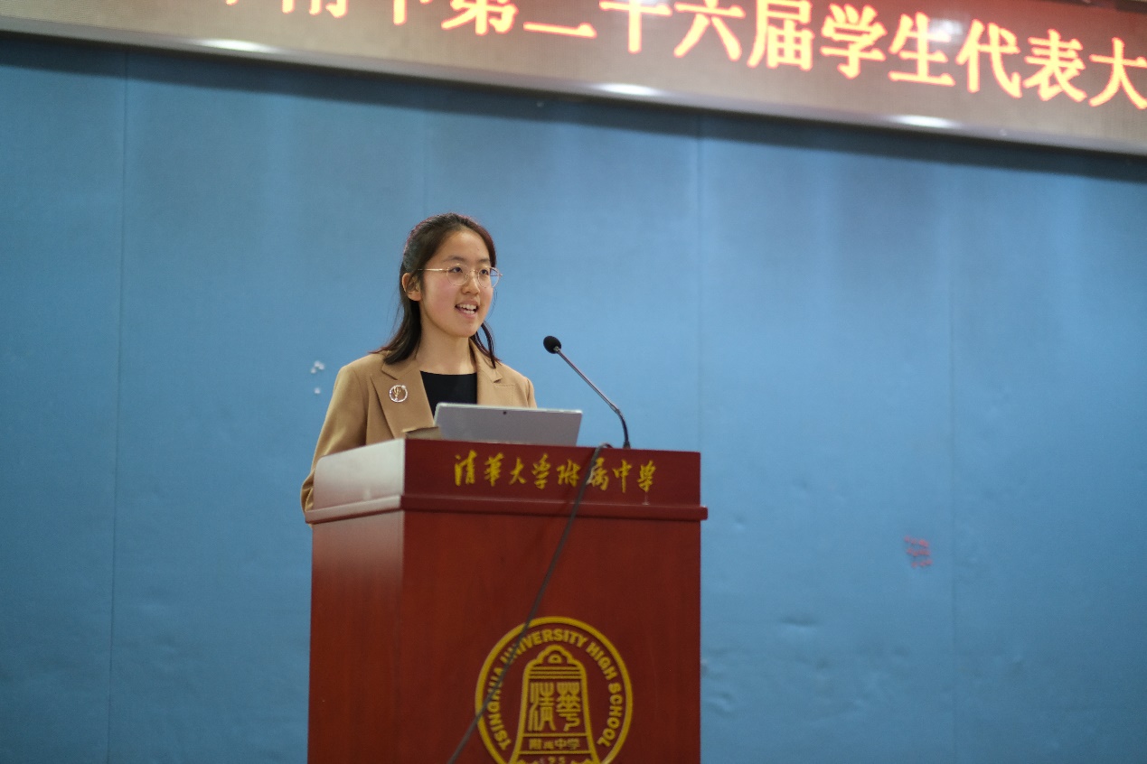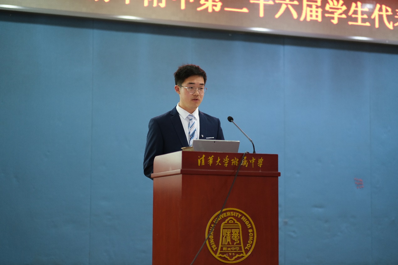 大会的下一项由第二十五届学生会主席孙晓森作2020-2021年度“生声不息”学生提案回复报告。在上一年度中,学生会共举行5次校长面对面活动,收到百余份学生提案,并将经过筛选的提案上报学校获得答复。提案内容涉及学生生活的方方面面,如学校未来发展、基础设施、课程教学,以及学生的餐饮、住宿、活动等方面,学校各相关部门都一一作出答复并及时在现有基础上做出改进,做到服务于学生,也体现了同学们作为主人翁参与到学校的各项治理工作中。