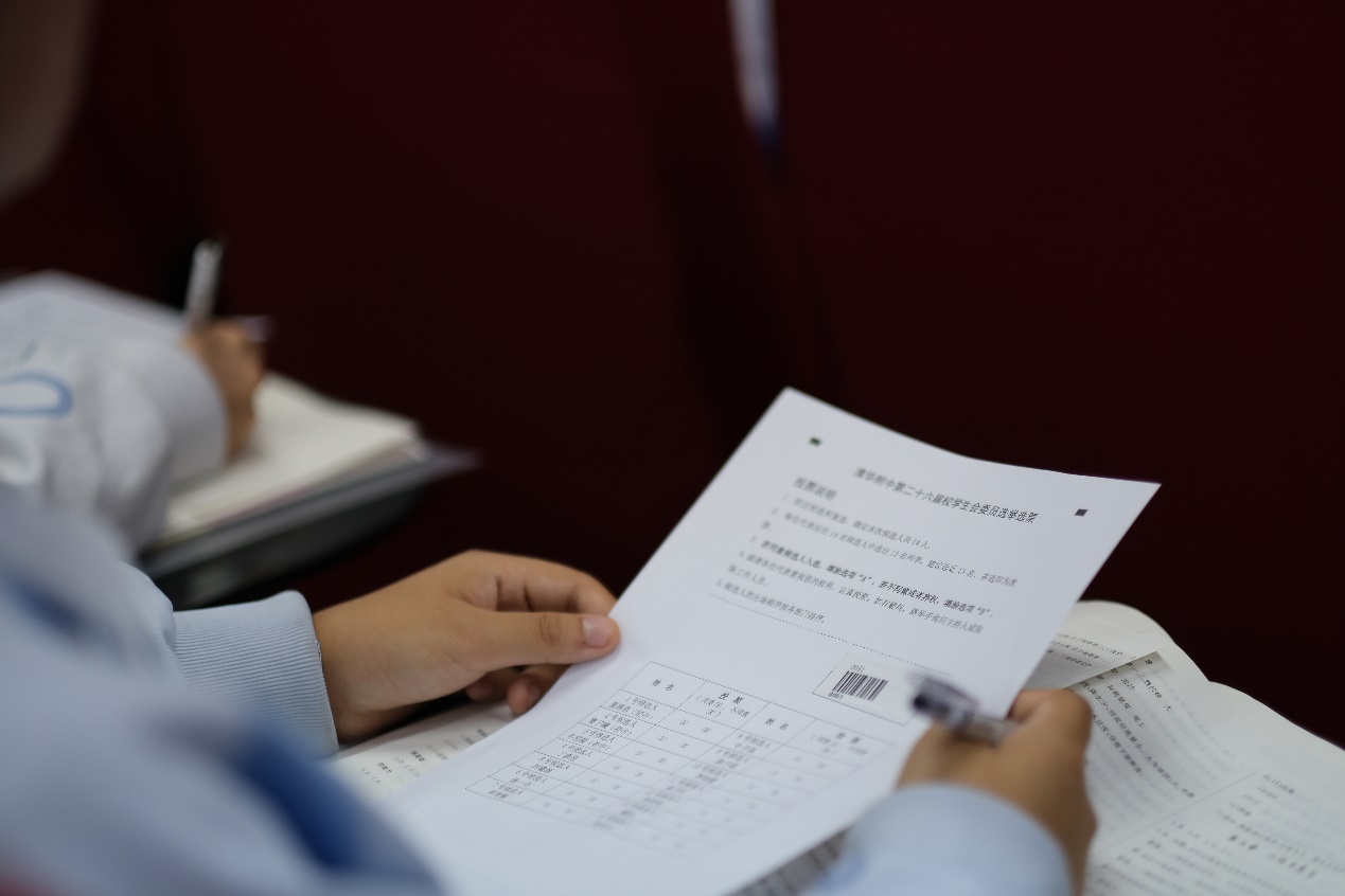 候选人演讲结束后,高中同学通过电子票,初中同学通过纸质票,投出了自己庄严的一票。