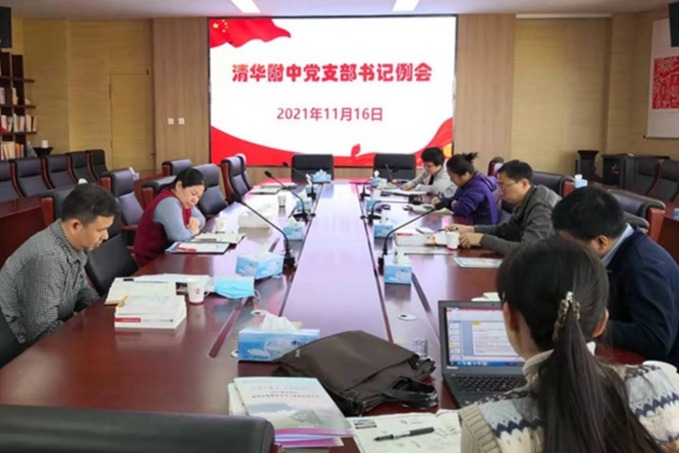党委副书记张洁首先布置十九届六中全会学习以及最高科学技术奖获得者王大中事迹学习事宜,对党史学习教育为群众办实事、党支部特色活动调研课题等具体工作提出明确要求。各党支部围绕开学以来落实“双减”政策的措施做法和问题困难深入调研,结合不同学科、不同学段的共性以及个性情况分别汇报并热烈讨论。