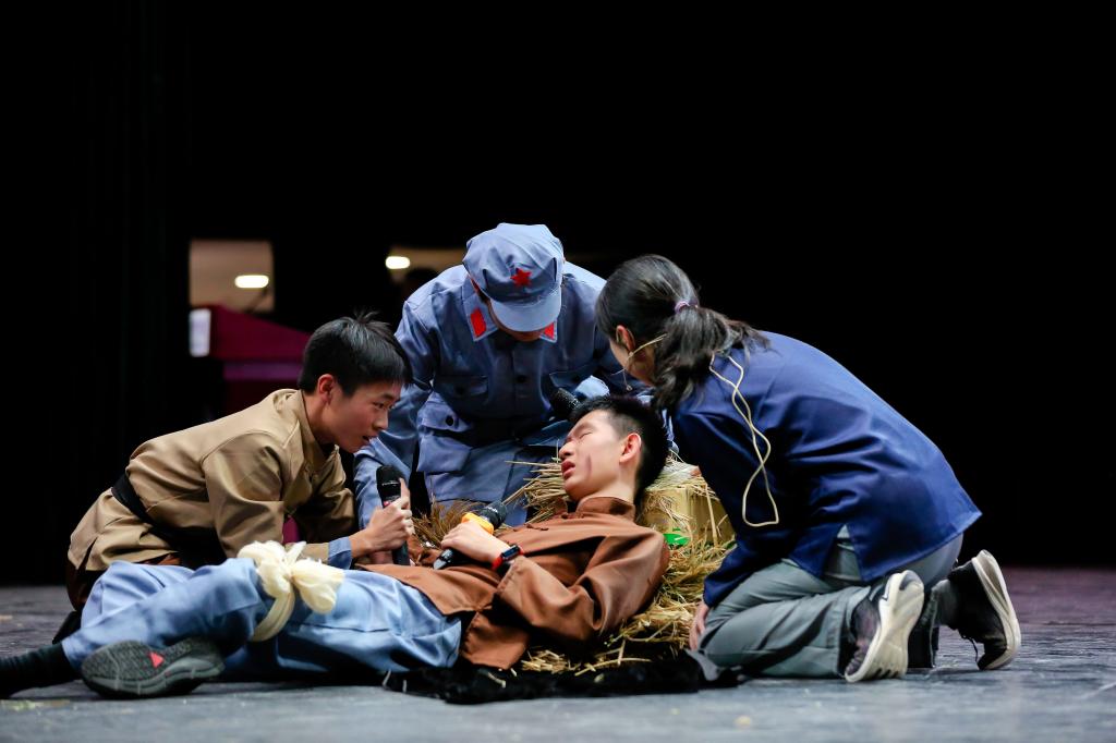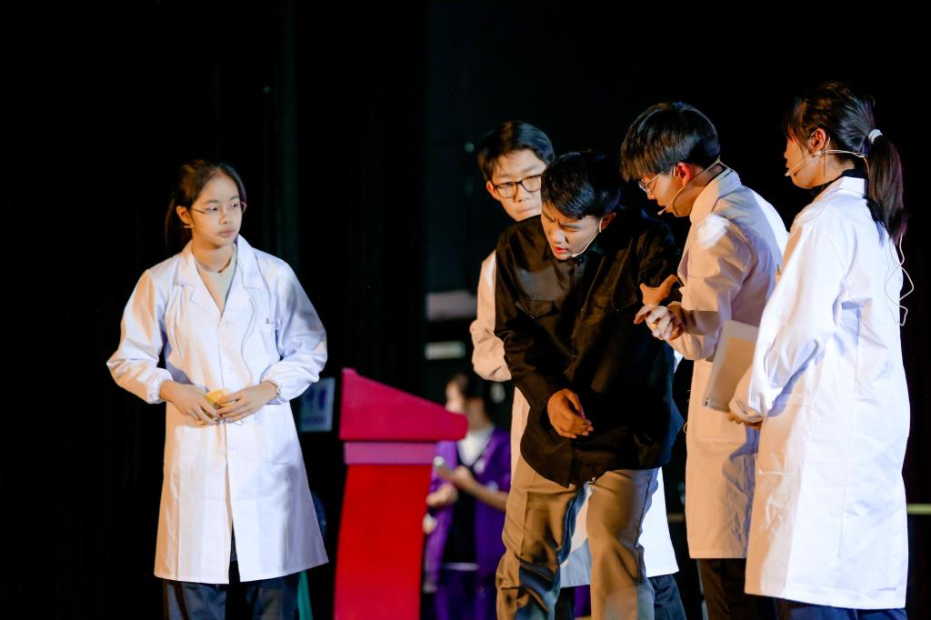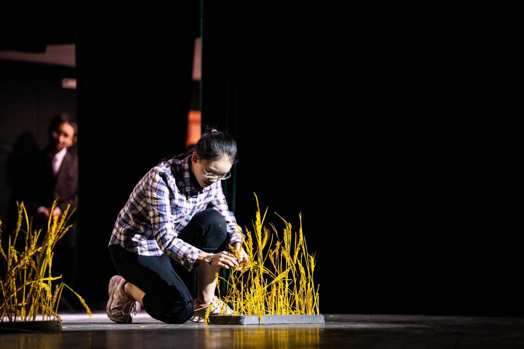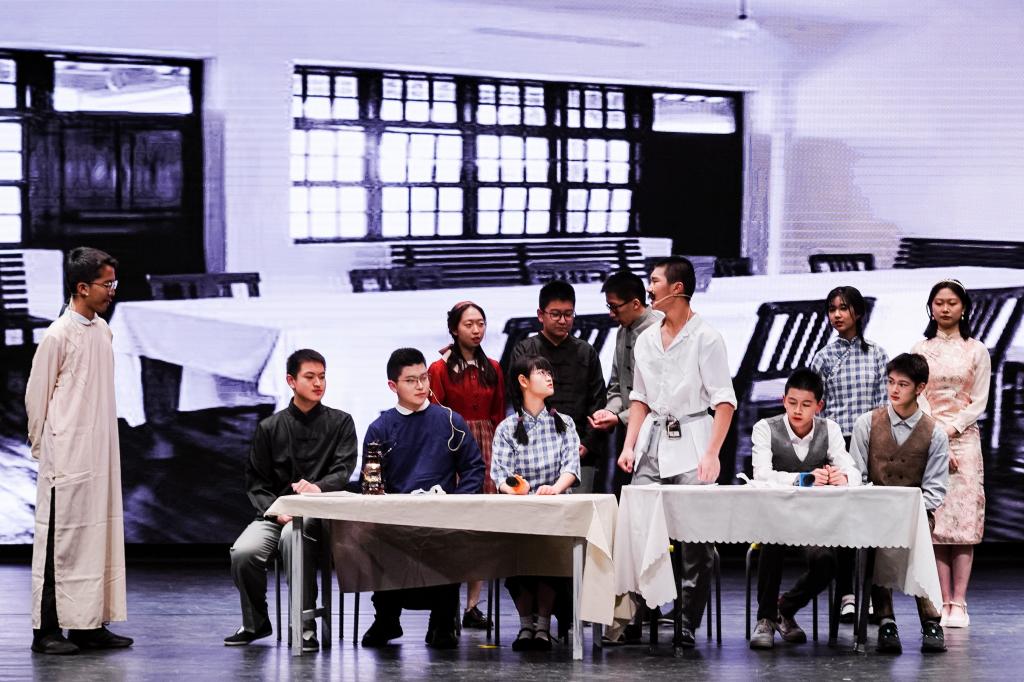 第三板块“富强道路”包含高2112《禾下》、高2105《还乡》、高2103《抗洪·中流砥柱》、高2104《邓稼先》、高2113《传火》五个剧目,分别对袁隆平、利比亚撤侨、抗洪、两弹一星、奥运等标志性人物与事件进行回顾和再现,表现出新中国建立后从站起来到富强起来的伟大飞跃以及震撼人心的中国精神。同学们从不同角度体会富强道路上那些非凡故事的精神内核,感悟平凡人物的高尚品格与情怀,希望未来能接过历史的接力棒,成为建设国家的栋梁之材,中国精神永葆风华,走向全世界。