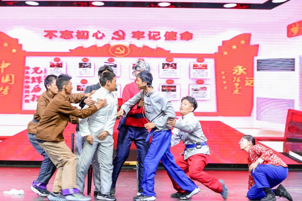 第二板块“薪火相传”包含高2110《励新》、高2111《破晓》、高2114《漠上青春》、高2116《征》、高2106《雪域春风》、高2115《脱贫.cn》六个剧目,分别对中国共产党的成立、地下工作者、塞罕坝、长征、和平解放西藏、脱贫攻坚的故事进行演绎,精彩展现了中国共产党在不同历史时期拨动国家命运之弦的传奇历程。共产党人的精神、初心和使命,经过血与火的洗礼,经过建国后的曲折探索,历久弥新,熠熠生辉。同学们在深情演绎中切身体验到那从未改变的红色文化与党的精神本色。