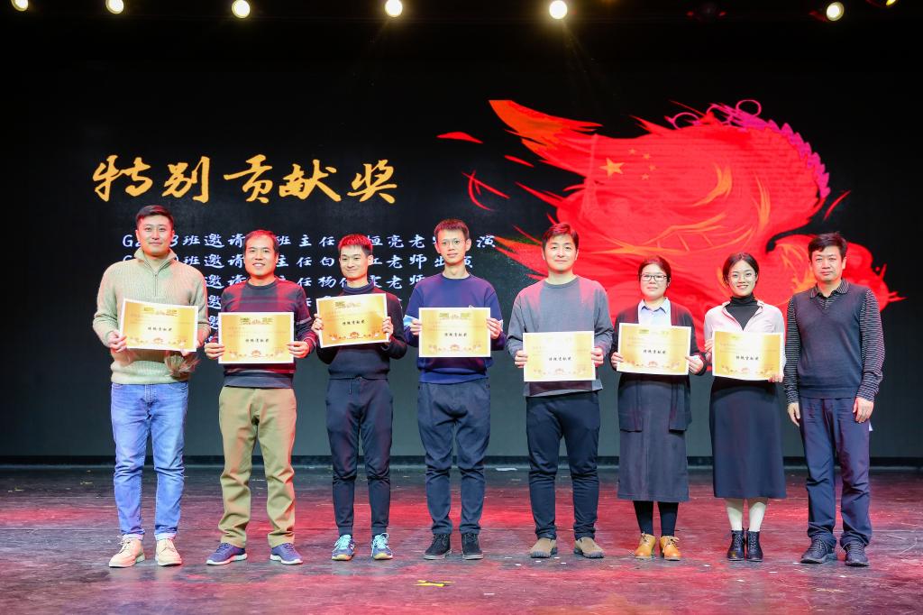 白雪峰副校长(右一)为参演的老师们颁发“特别贡献奖”