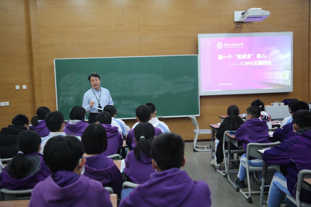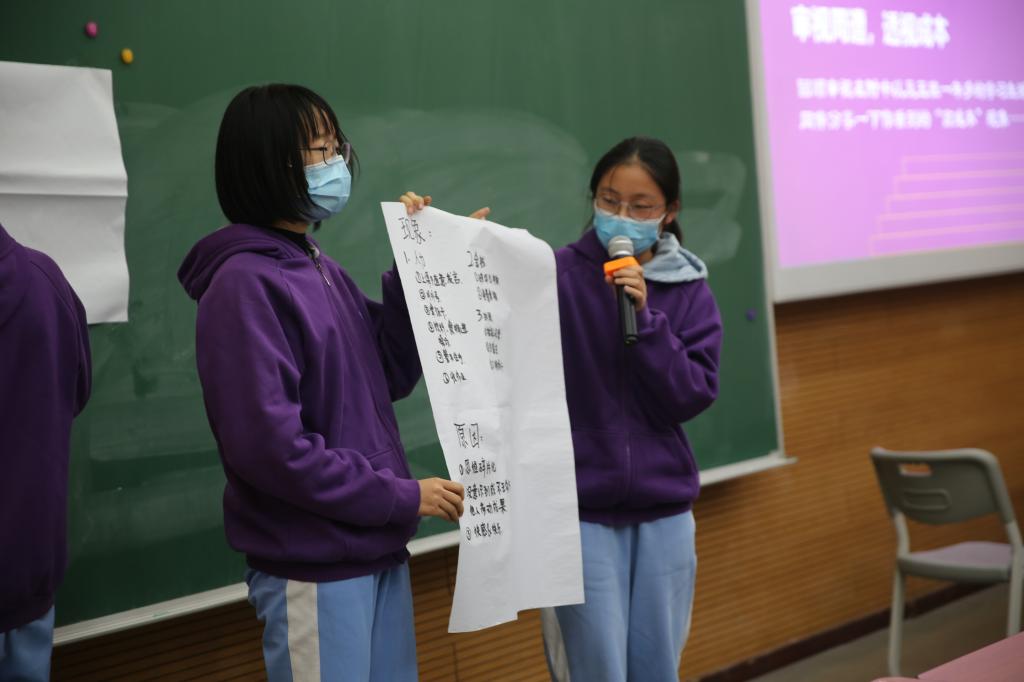 本次班会示范课主题为“做一个‘低成本’的人”,皇冠体育初20级郑铉老师带领学生,从一个经济学概念“成本”引入班会话题;组织学生分组讨论,引导学生回顾审视在附中以及班级一年多的学习生活中,然后启发学生思考这些现象背后的原因;最后,郑铉老师引导学生反躬自省,思考如何切实可行地降低在校生活学习的各种“成本”,养成理性自觉的思考习惯,理性地设计自我,还要融入团队等。起承转合,四个环节,环环相扣,层层深入。一节班会课,给学生带来很多启发和收获。